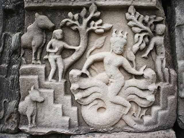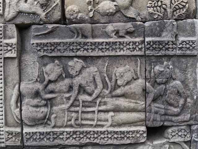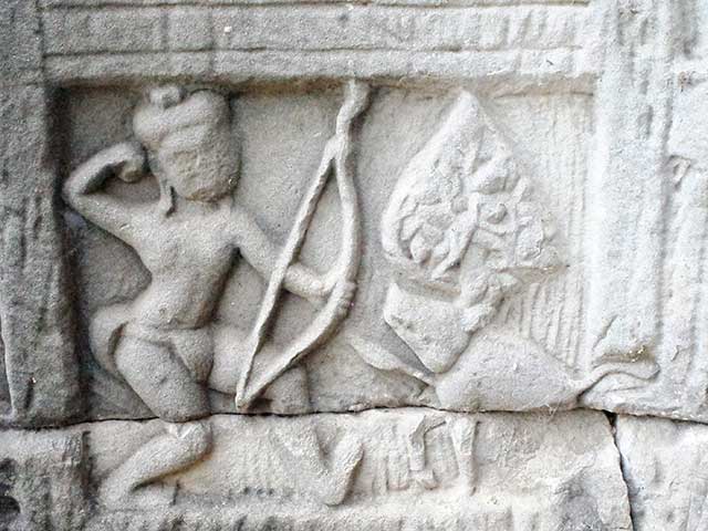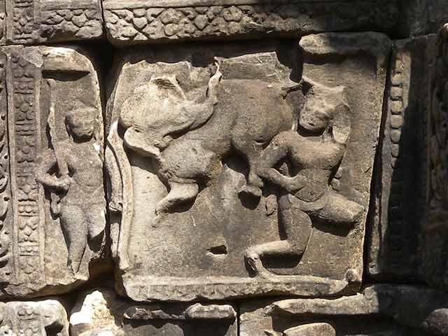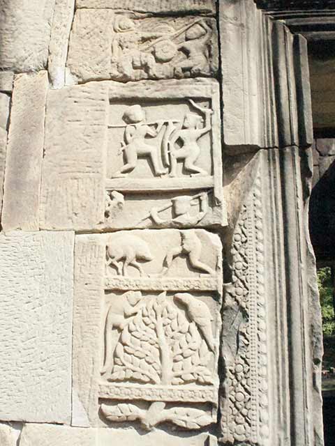 第二廻廊の東塔門には、ラーマーヤナ物語が、南塔門と西塔門には、クリシュナのエピソード、北塔門には、ラーマーヤナを題材とした彫刻が彫られています。(2015/08/13更新)