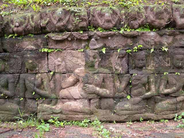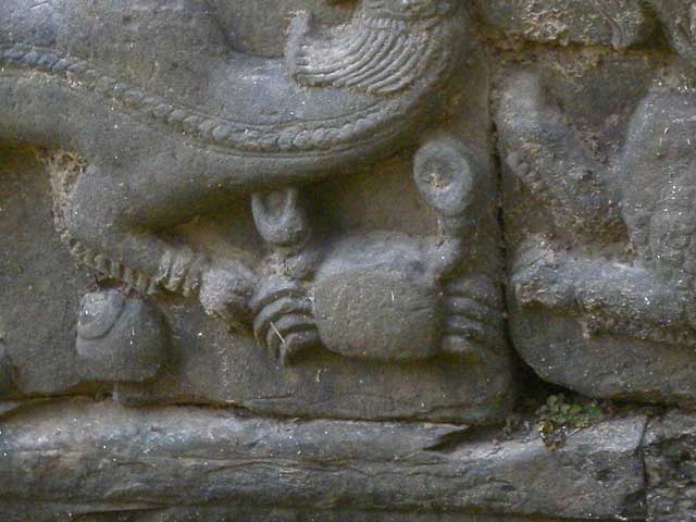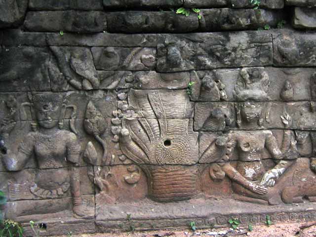 男池の側壁に、神々やアプサラ、ガルーダ、ナーガ、ワニ、魚、馬頭などのレリーフが見られます。
