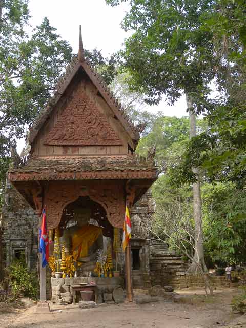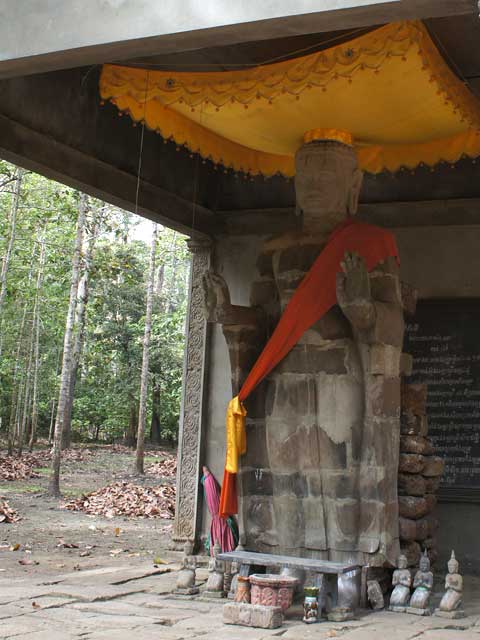 現在は、簡素な造りの建物が建っていて、後世に持ち込まれた高さ約4mの大きな降魔印(触地印)の仏陀像が祀られています。