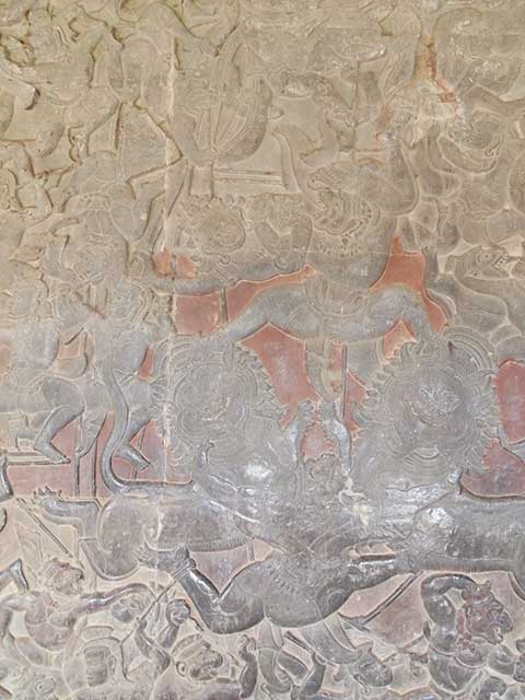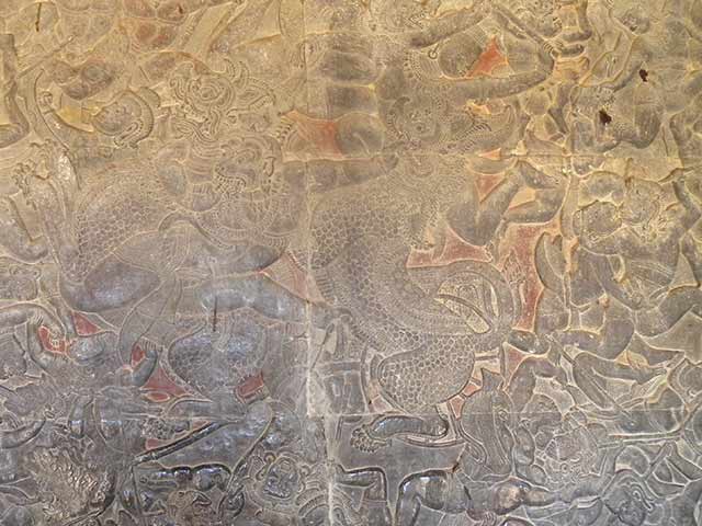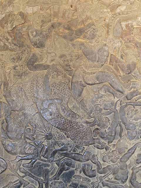 アンコール・ワット第一回廊西面北側の壁面(全長51.25m)は、ラーマーヤナの戦闘編(ランカー島の戦い)が題材です。