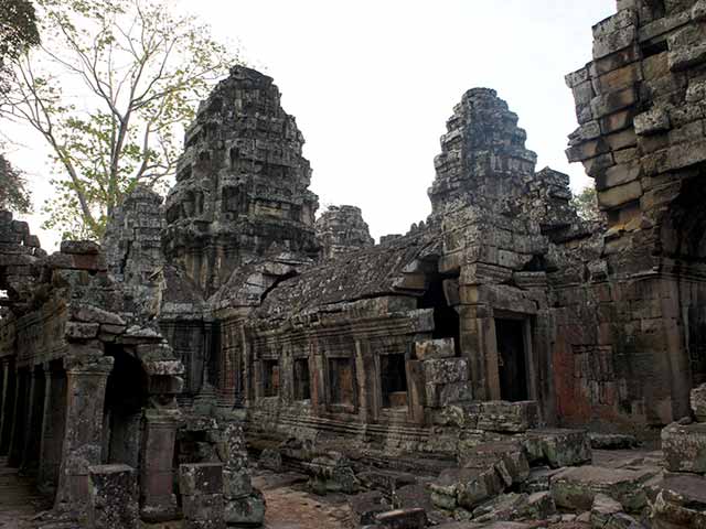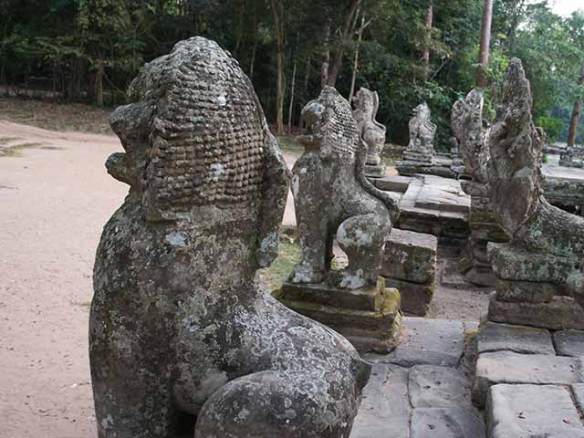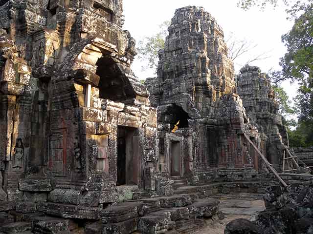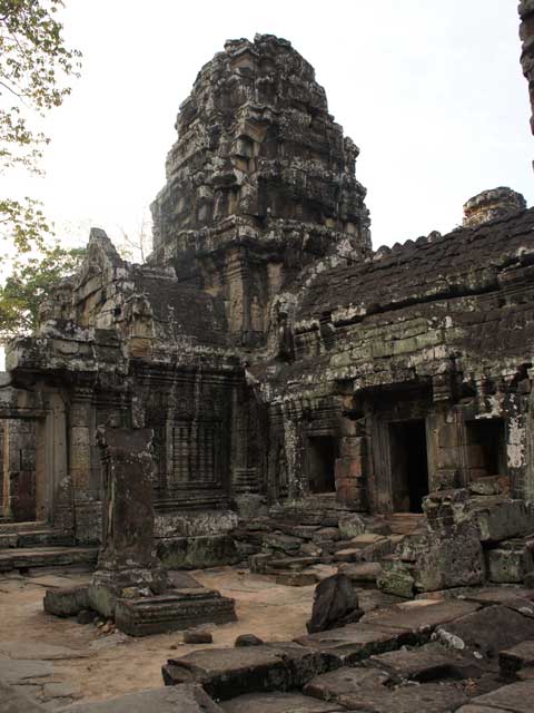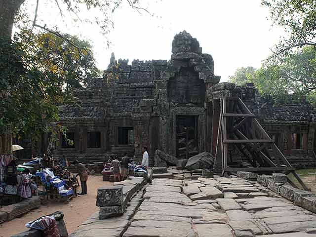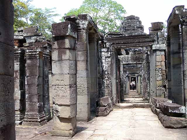 低品質の砂岩を使って建てられたので、内庭の祠堂の屋根や回廊はほとんどが崩れ落ちています。