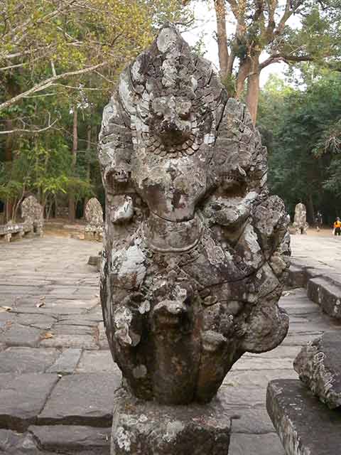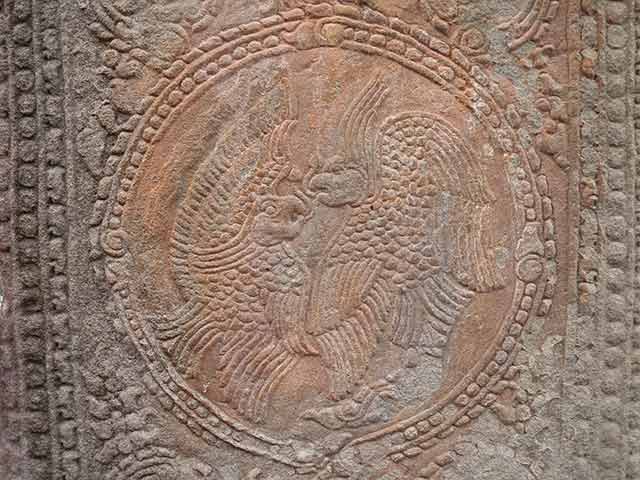 塔門脇の彫像は、アンコール・トムではアイラヴァータですが、ここは、ガルーダです。