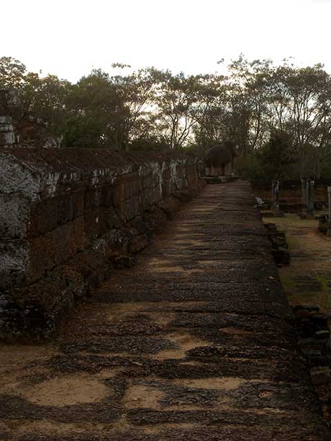 第二基壇の四隅に、この遺跡を特徴づける象の石像が据えられています。