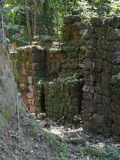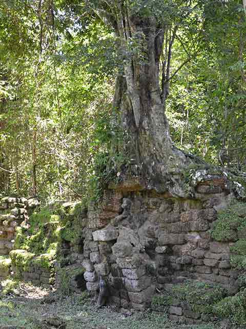小道を入ったところに、巨木に取り付かれた周壁が現れます。