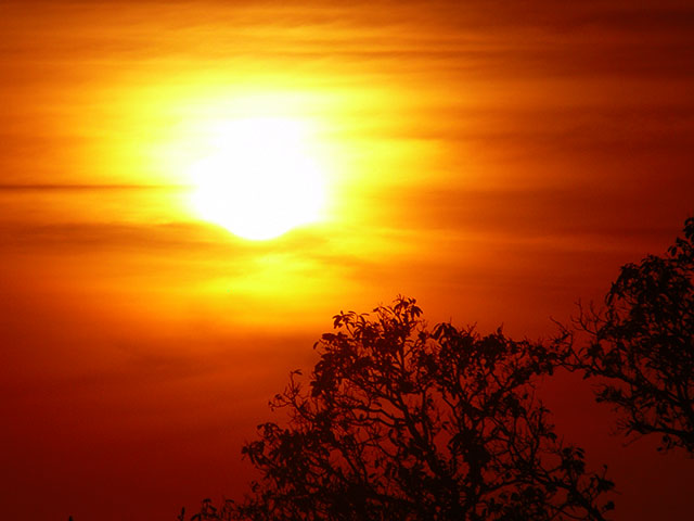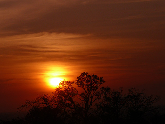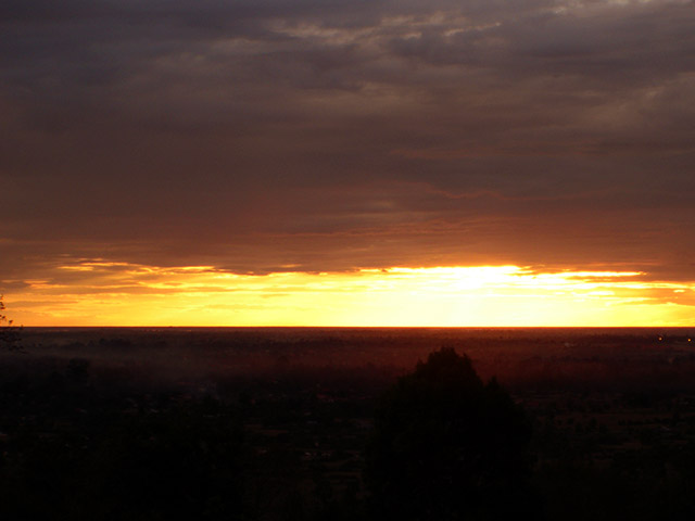 | 標高約60mの頂上から見る西バライへ沈む夕日 | |