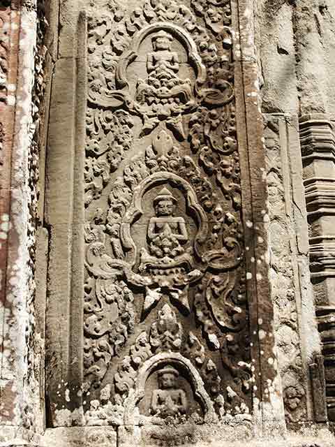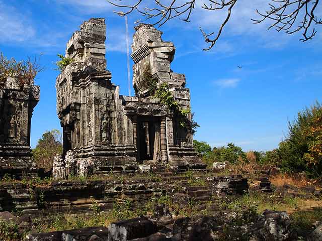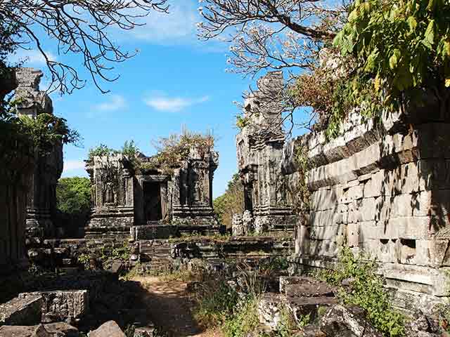 遺跡は、砂岩で作られた三つの祠堂と二つの経蔵があります。