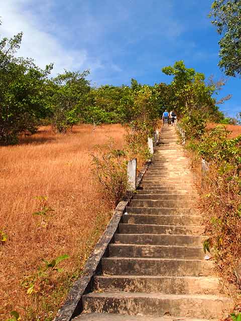 235mの山頂に遺跡があります。630段の階段は長く急で、日差しをさえぎるものも、あまりありません。