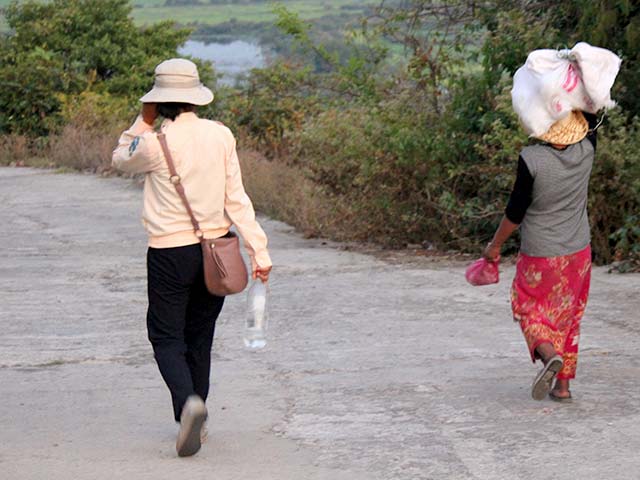検札所でチケットの確認を受けた後、山腹の南側を回りこむように登っていきます。
