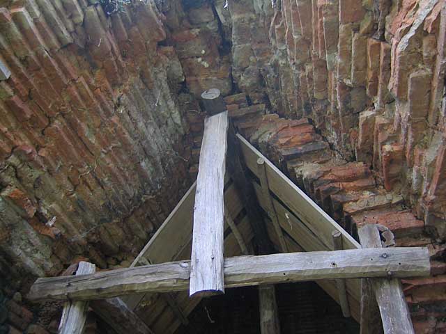 高さ1.5mほどの基壇上に煉瓦造りの祠堂が3塔づつ2列並んでいる。6段の階段が東側に3つ、西側に1つあります。