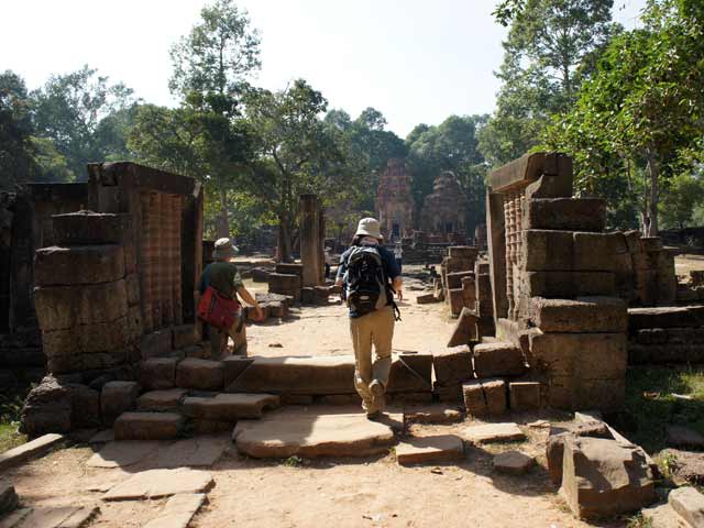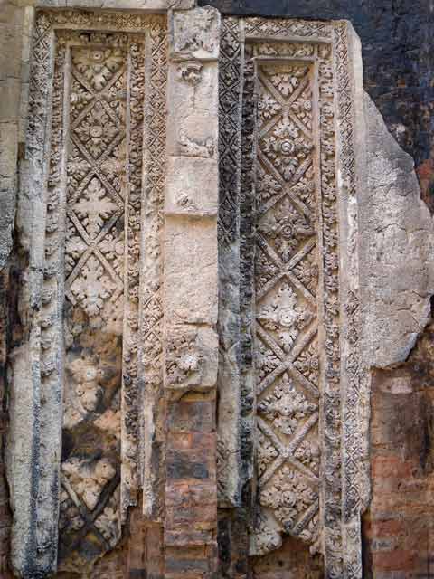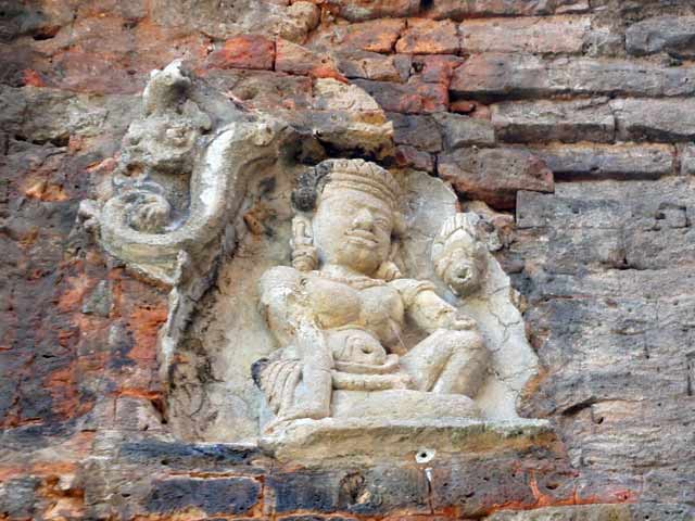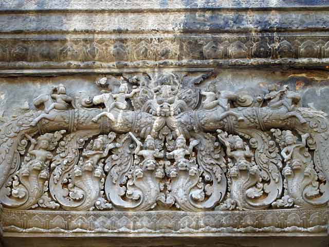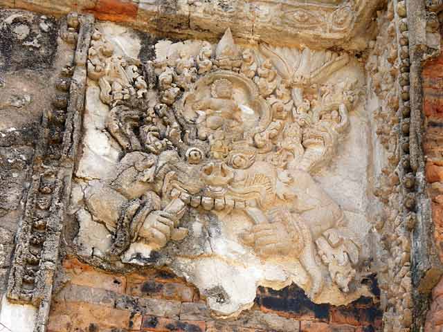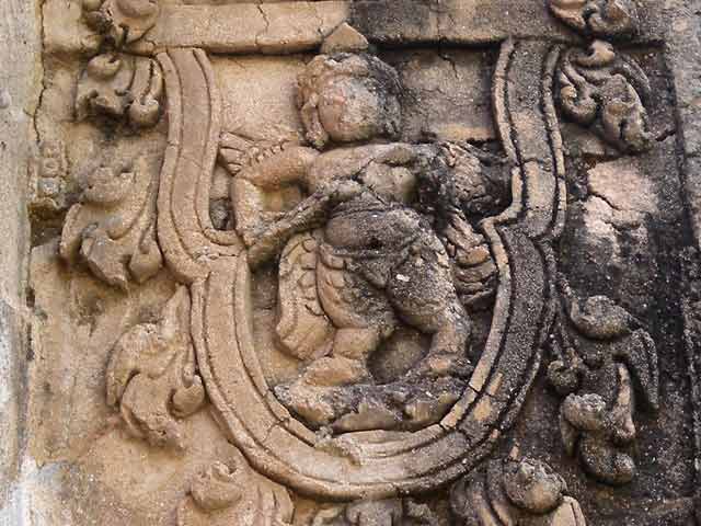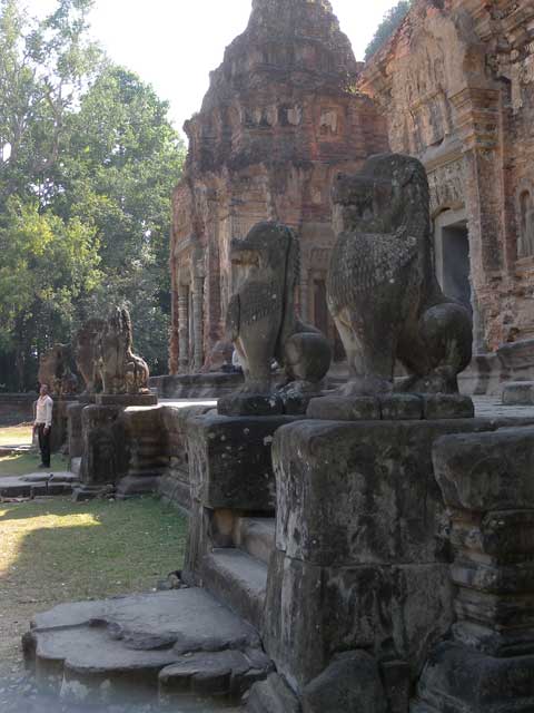 祠堂の階段脇には一対づつのシンハが置かれています。前列の祠堂両脇の壁がんには、ドヴァラパーラが、後列にはデヴァターが刻まれています。