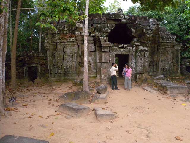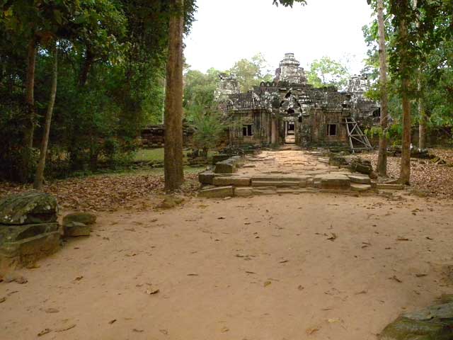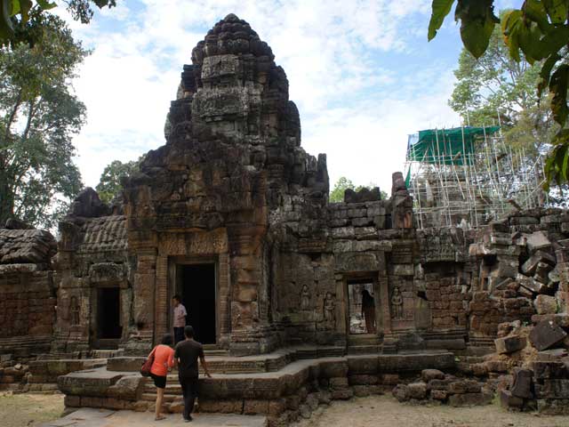 ニャック・ポアンから東へ2kmのところにある12世紀末に建てられたバイヨン様式の小さな仏教寺院です。