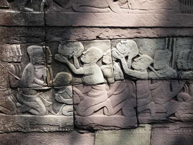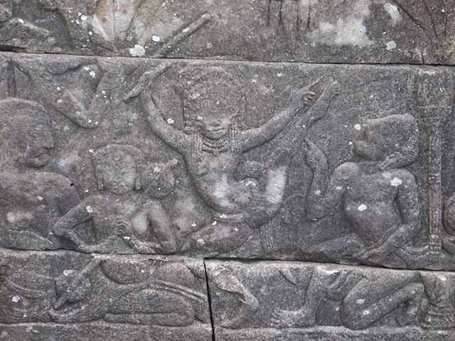 外周壁のレリーフは、チャンパ水軍や軽業師などで、多くのものが、バイヨン外回廊のものにそっくりです。
