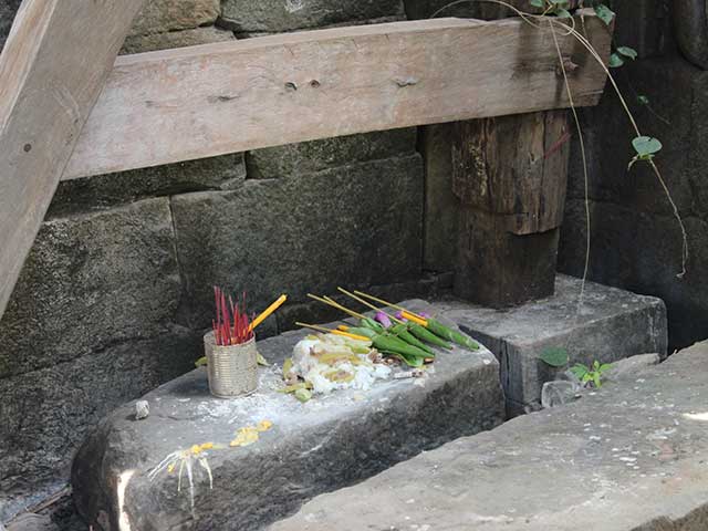 タ・プロムも、アンコール・ワットやバイヨンと同様に遺跡ではなく、今も信仰の対象で、お供え物が置かれ、線香が炊かれています。