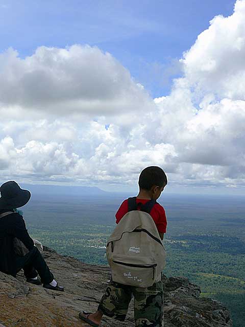 標高約650mの断崖の下にカンボジア平原が広がります。はるか遠くに山が霞み、ジャングルに雲が流れ、心地よい風が頬をなぜます。