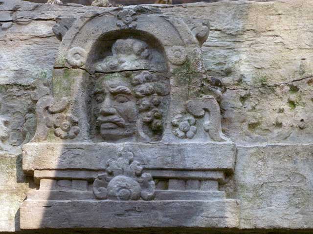 西側内周壁の壁体東面に、円形浮彫(メダリオン)が刻まれています。