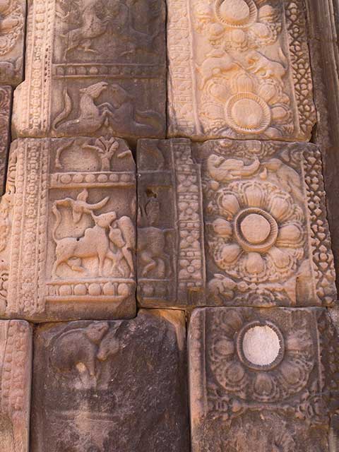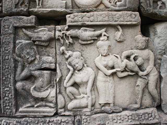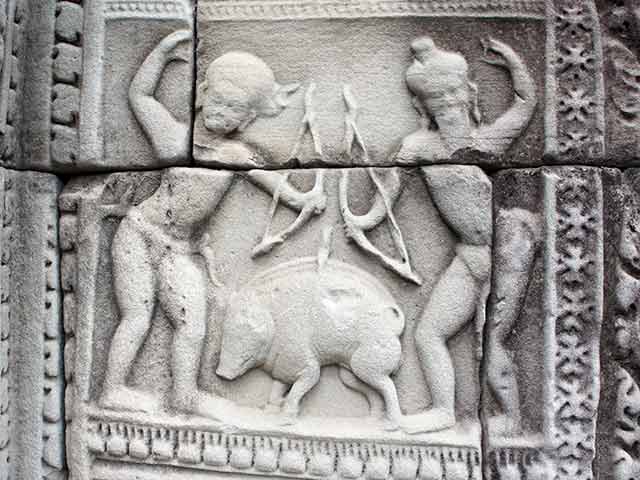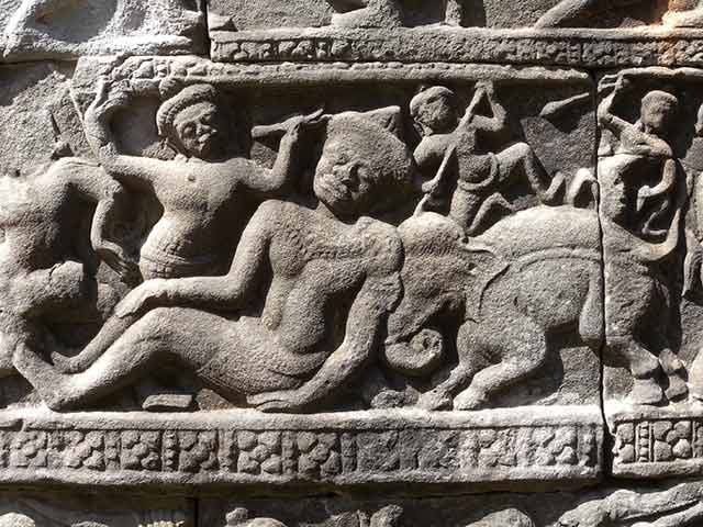 第二廻廊の東塔門には、ラーマーヤナ物語が、南塔門と西塔門には、クリシュナのエピソード、北塔門には、ラーマーヤナを題材とした彫刻が彫られています。(2015/08/13更新)