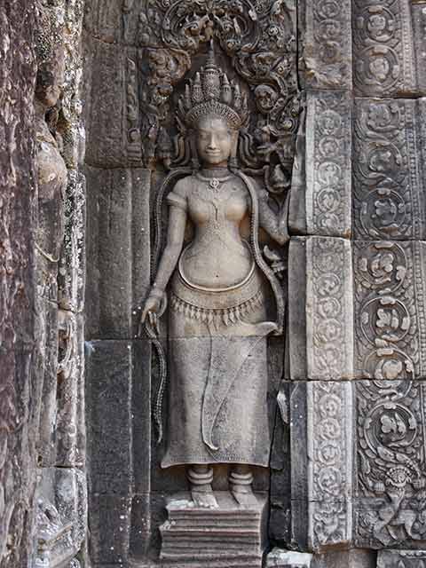 バイヨンの中央祠堂に向かう東の正面入り口の左右に、特別なデヴァター2体が配置されています。