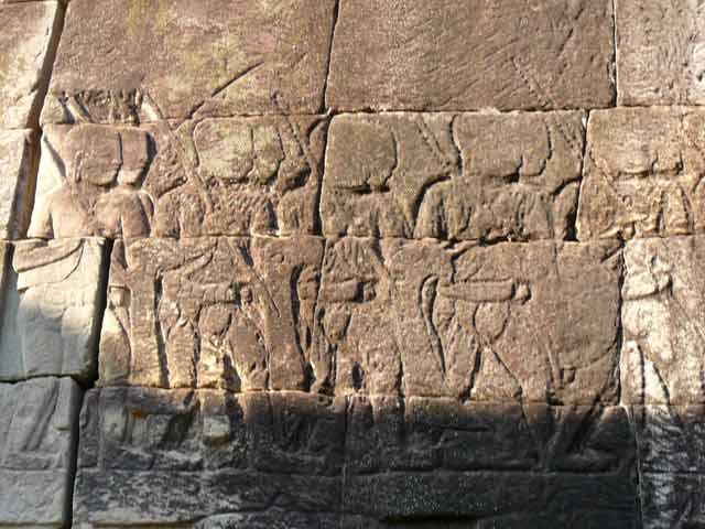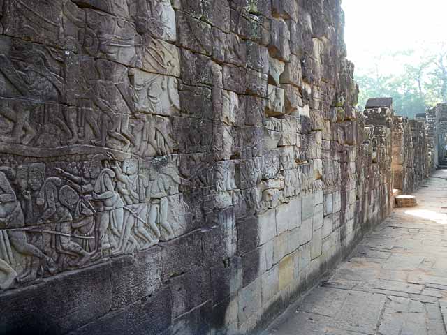 バイヨン寺院の外回廊は、東西160m X 南北140m 1周600m 高さ約3mです。