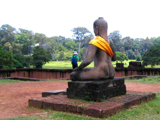 座像は、らい病患者であったバラモン教の富の神クベーラの像、マハーデーヴァの像、ヤショヴァルマン一世の像、地獄の神ダルマージャの像など諸説がありました。