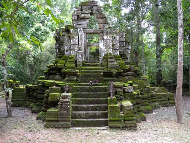 王宮前広場からアンコ-ル・トムの勝利の門に向い、勝利の門の手前200mの右側にある小道を300m程入ったところにあります。