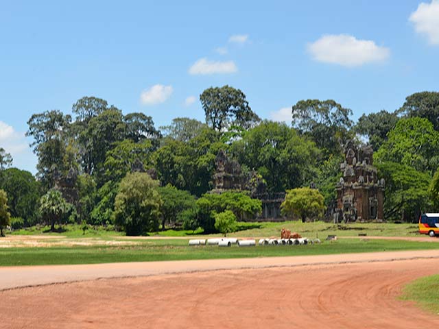 王宮広場の象のテラスの向かい側に12基の小さいラテライト造りの祠堂が間隔をおいて一列に立ち並んでいます。