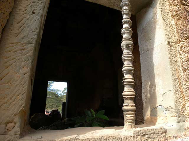 破風には、アーチ形のナーガが装飾されていて、また、リンテルには、カーラに乗る神が刻まれています。
