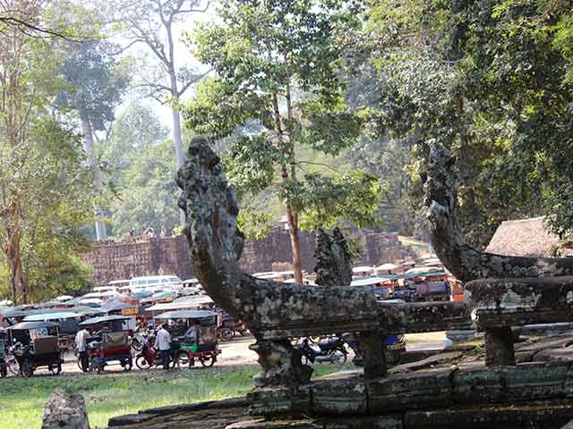 十字テラスは、円柱で支えられ、欄干はナーガで飾られています。