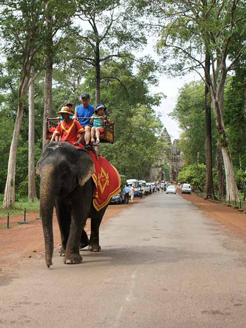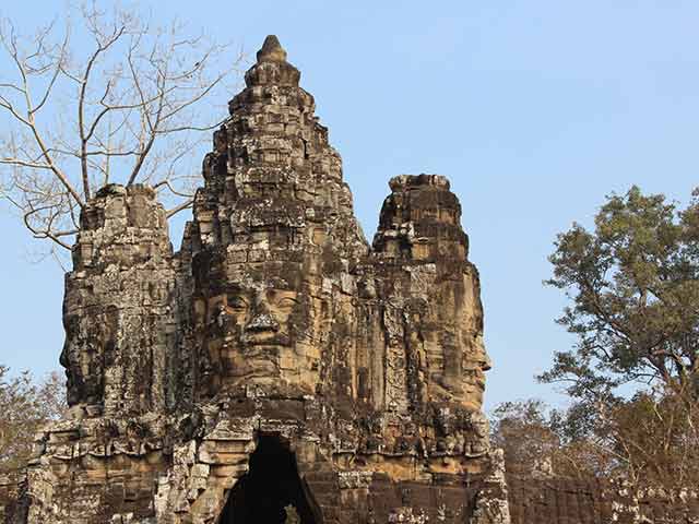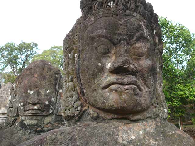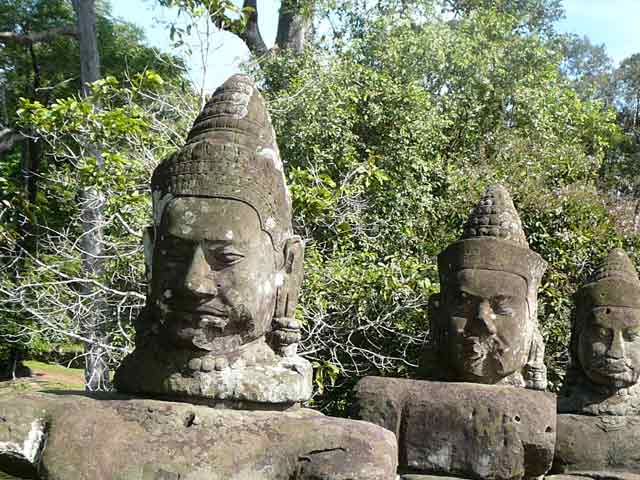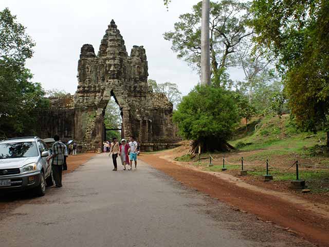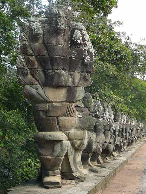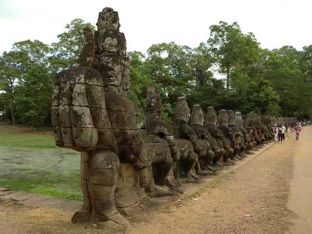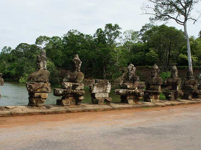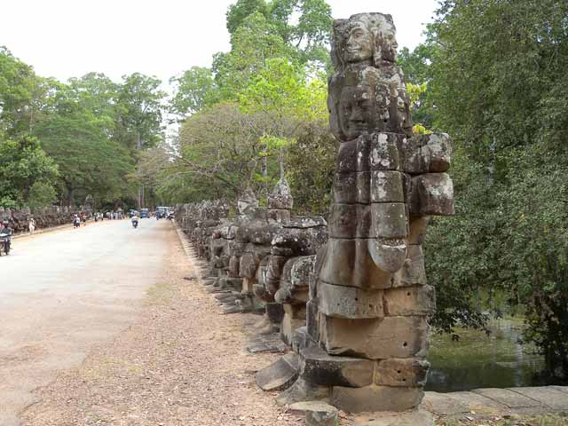 アンコール・ワット西参道を右手に見ながら環濠沿いの道をしばらく進むと、アンコール・トムの環濠に架かる陸橋見えてきます。