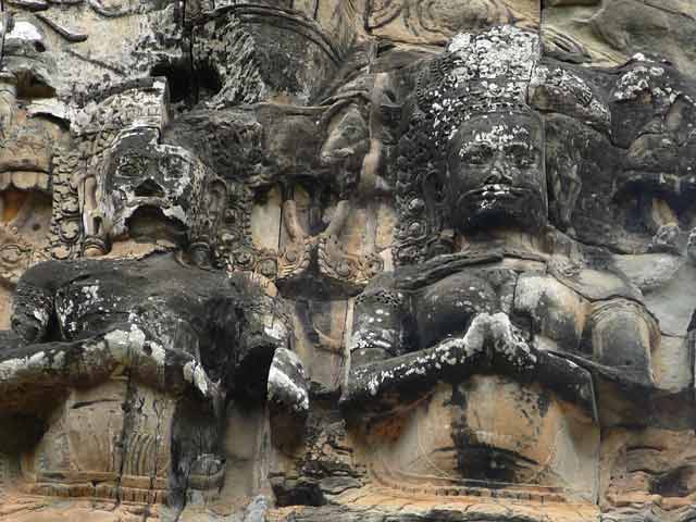 ナーガを抱えたデーヴァとアスラが欄干のように、陸橋の両脇に並んでいます。