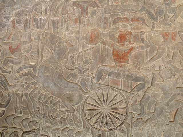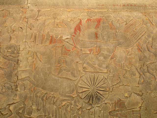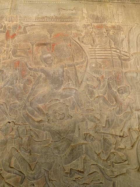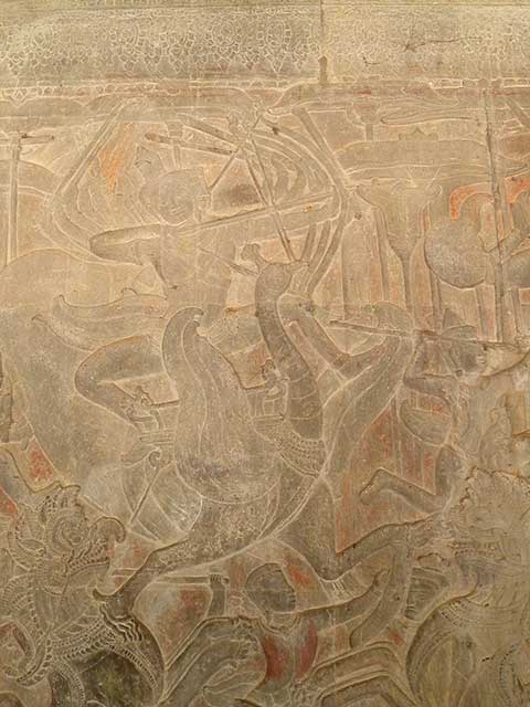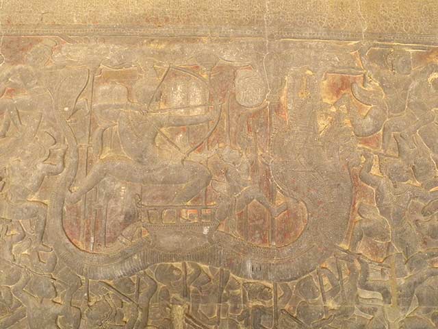 アンコール・ワット第一回廊北面西側の壁面(全長93.6mx幅約2.5m)に「神々と魔族の戦い」が描かれています。