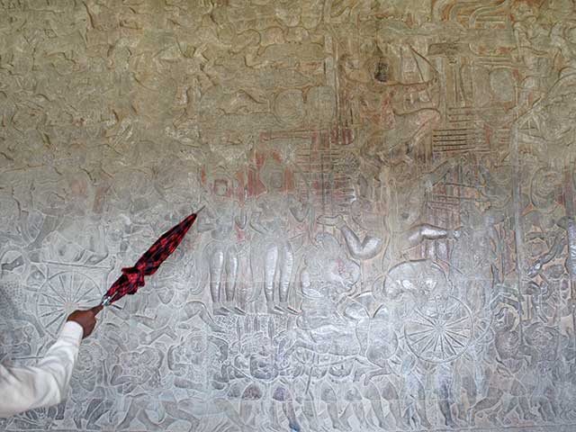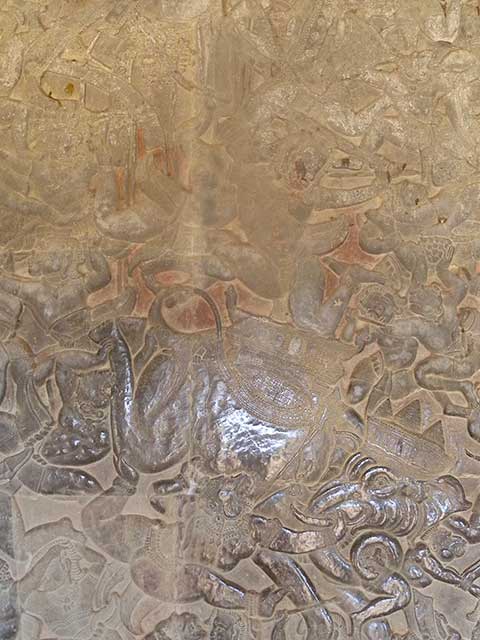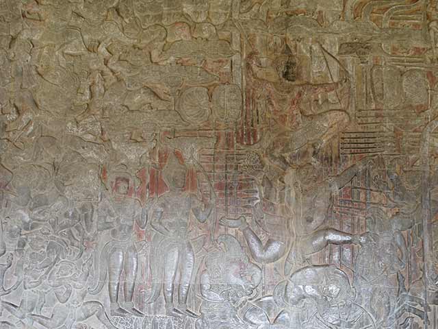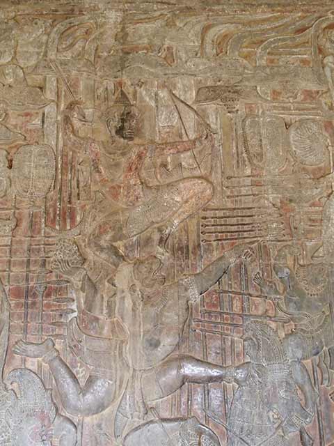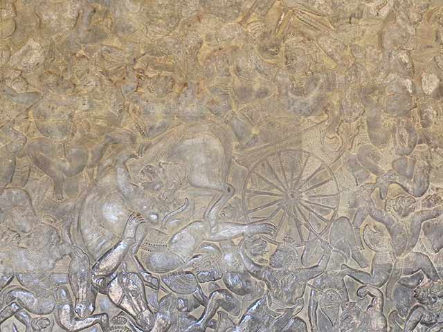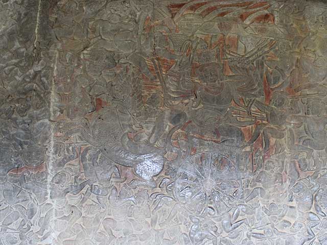 アンコール・ワット第一回廊西面北側の壁面(全長51.25m)は、ラーマーヤナの戦闘編(ランカー島の戦い)が題材です。