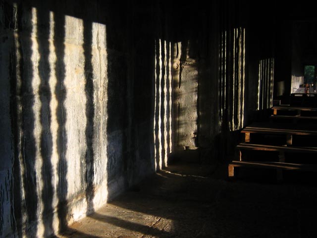 壁に写る連子窓の影
