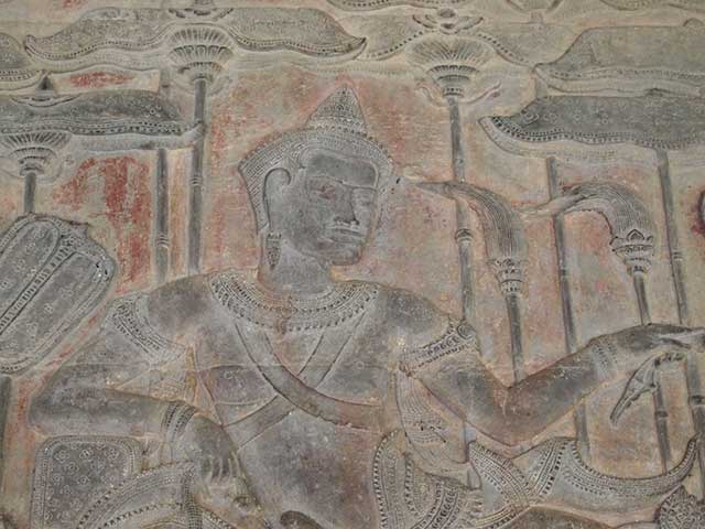 アンコール・ワット第一回廊の南面西側に、スールヤヴァルマンの偉大な功績を讃えた歴史回廊の壁画があります。