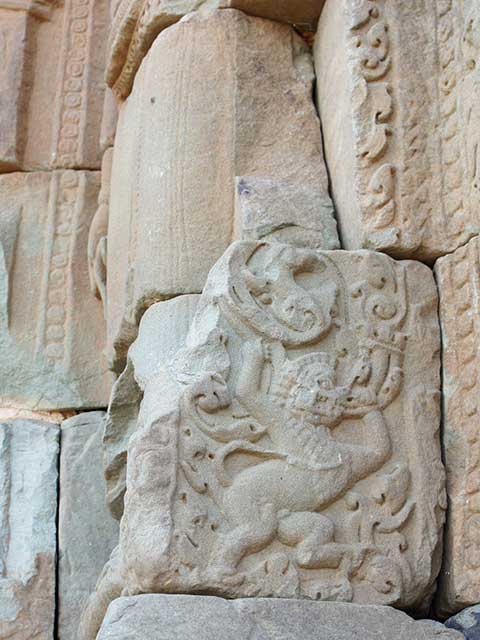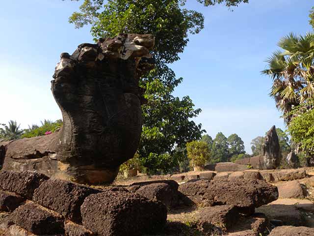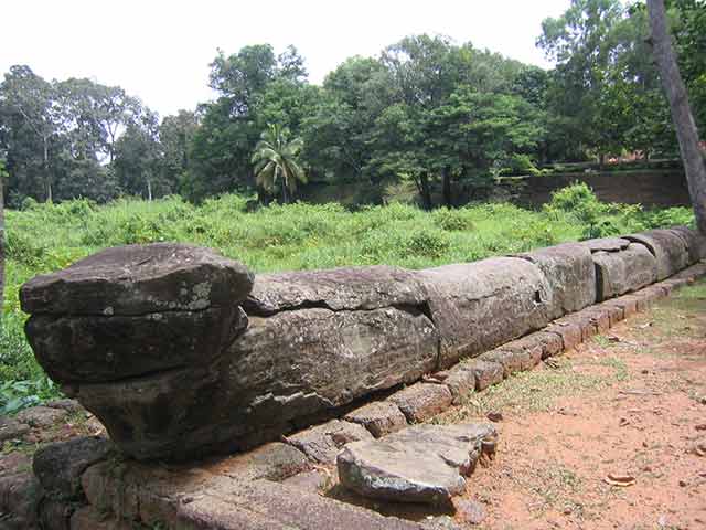 また、巨大な石材で造られた素朴な感じのナーガが参道に沿って無造作に地面に置かれています。