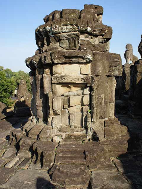 第一から第三基壇の各隅には象の彫像が、また、階段の両脇にはシンハが配置されています。