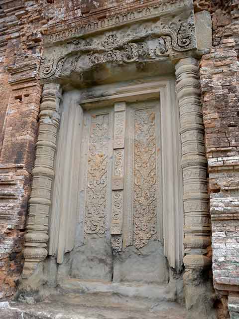 四方に階段が一つづつあるラテライト造り三層の基壇上に、一基のレンガ造りの主祠堂が建っています。