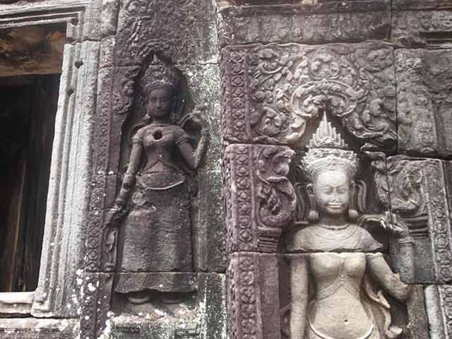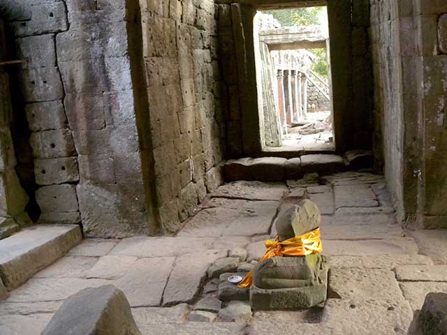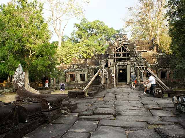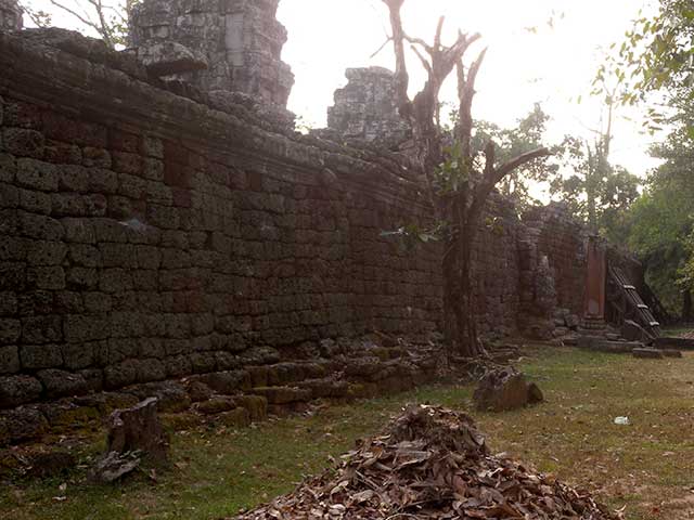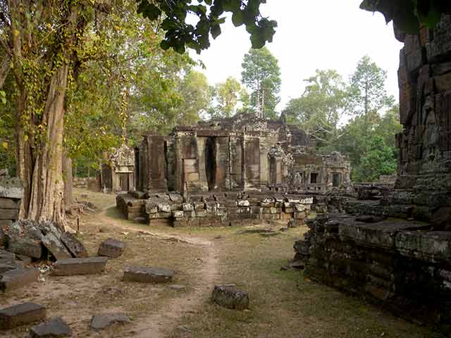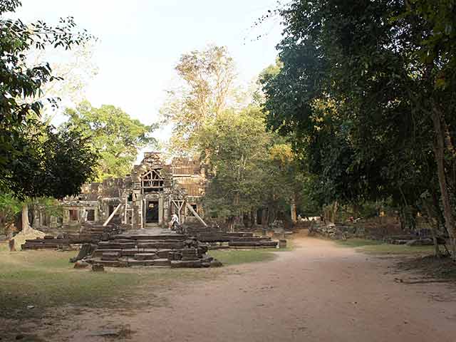 低品質の砂岩を使って建てられたので、内庭の祠堂の屋根や回廊はほとんどが崩れ落ちています。