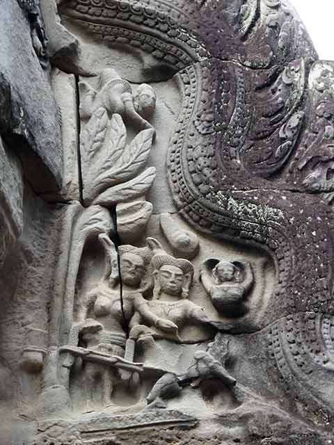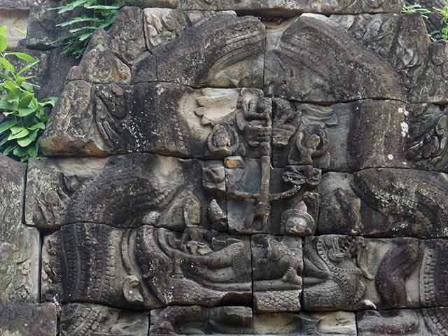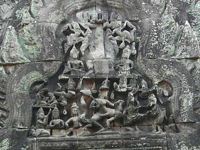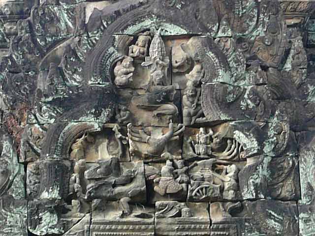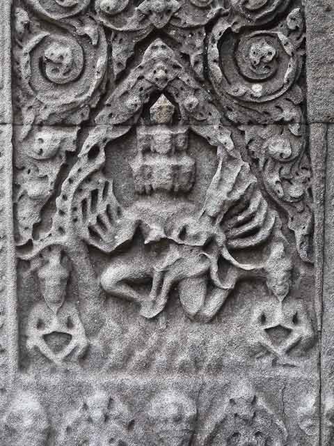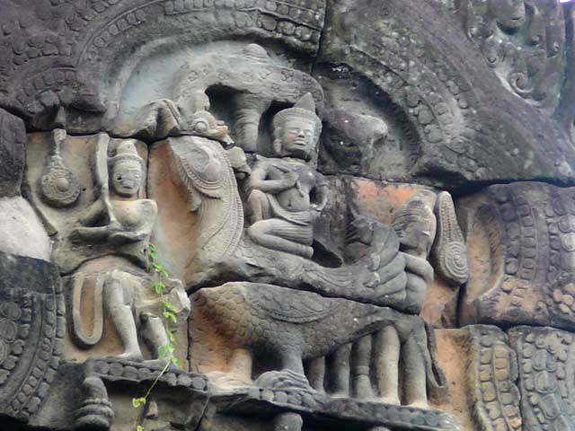 一つは、外周壁と内周壁の外面にあるシヴァ、ヴィシュヌ、ラーマなどのレリーフで、他のレリーフと異なり大きくて、彫られた像も力強く、高貴な衣装を身につけています。