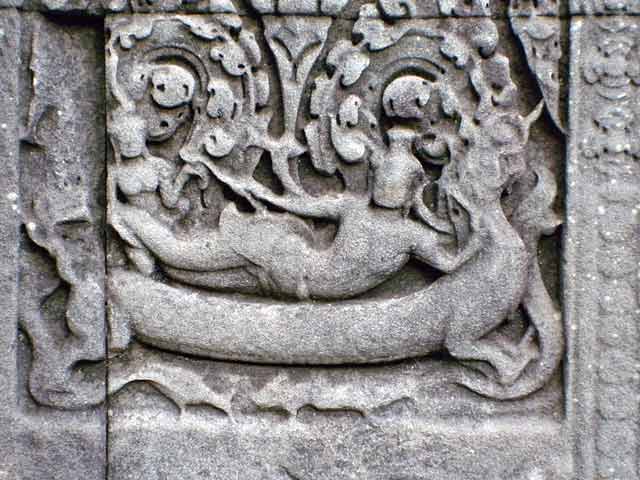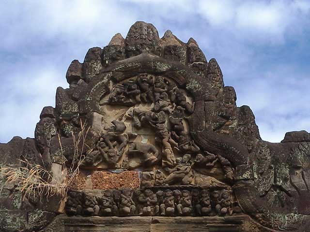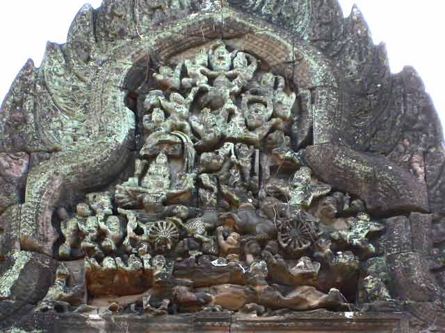 破風は、ラーマヤナを題材とした「刺さった槍を引抜くラーマ」や「ラーマとラーヴァナ」、シヴァ、ガネーシャ、クリシュナなどインド神話の宝庫です。(2013/07/13更新)