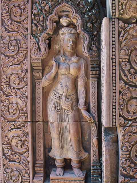 「地球の歩き方」アンコール・ワットとカンボジア('04~'05)P70のバンテアイ・スレイの記事の中で、これぞ「東洋のモナリザ」と紹介されているのは、北祠堂南面東側(N8)のデヴァターです。