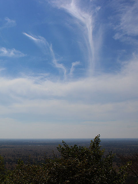 山頂からクレーン山が見えます。空に繰り広げられる雲の表情が疲れを忘れさせます。