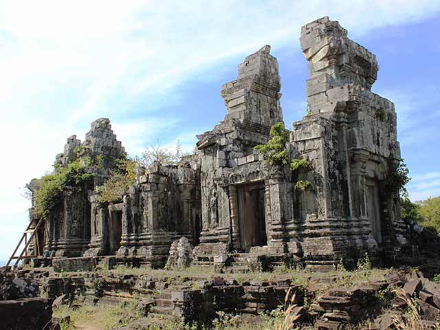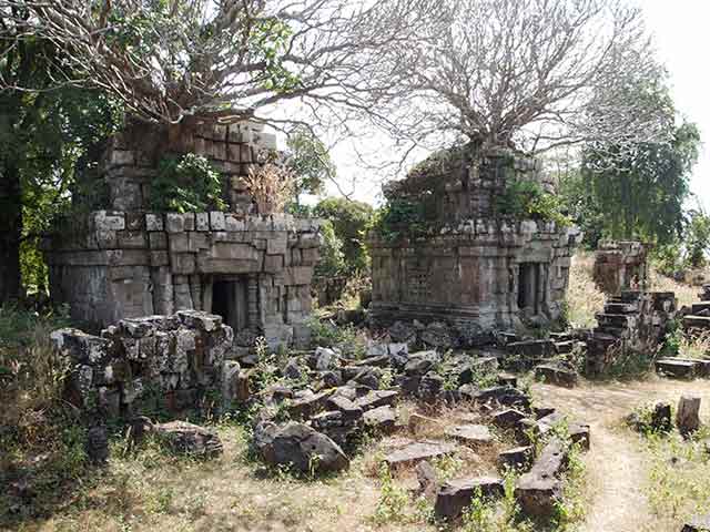 遺跡は、砂岩で作られた三つの祠堂と二つの経蔵があります。