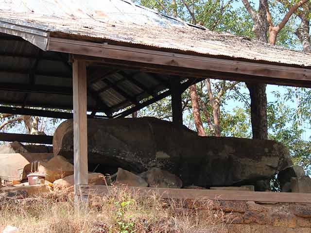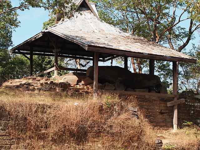 この遺跡から西へ約150m行ったところに、屋根の架かった12m四方のラテライト製の基壇があります。