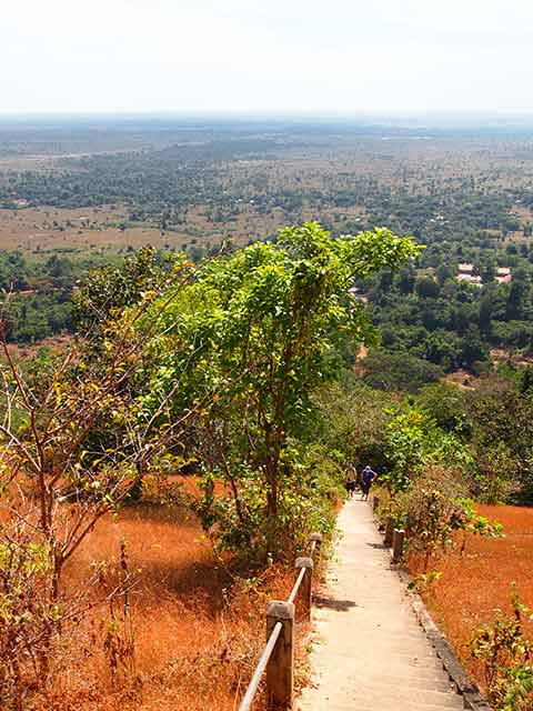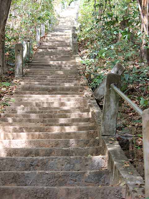 235mの山頂に遺跡があります。630段の階段は長く急で、日差しをさえぎるものも、あまりありません。