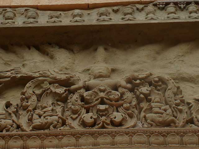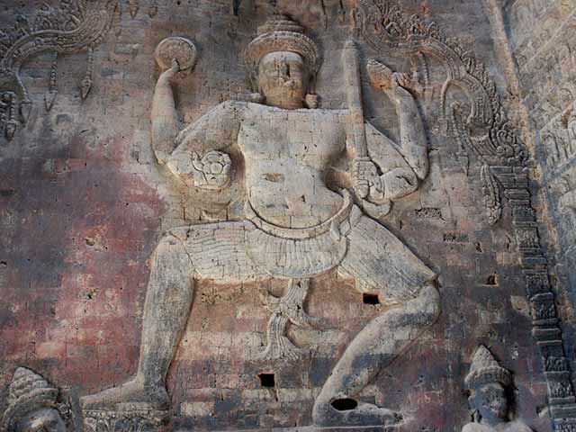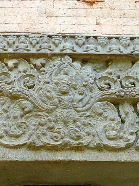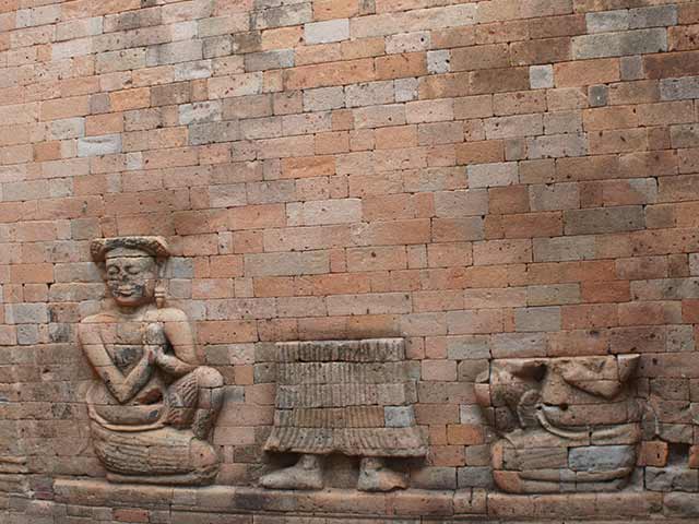 見所: 祠堂内部のレンガに直接刻まれたヴィシュヌ神やラクシュミー