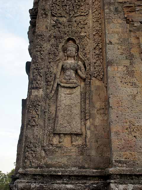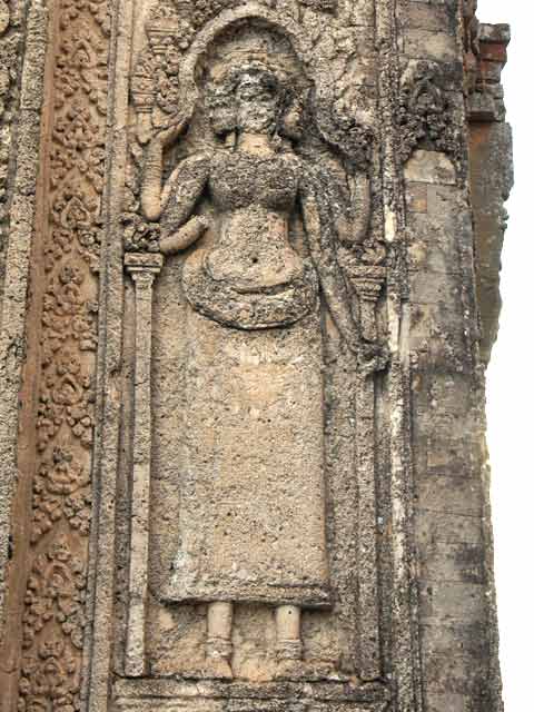 ドヴァラパーラ(女神)のうち一体は、ブラフマーの神妃サラスヴァティ(四面四臂)「Images of the Godsより」または、ブラフマーの女性形ブラミー「Ancient Angkorより」と言われています。(2014/09/04更新)