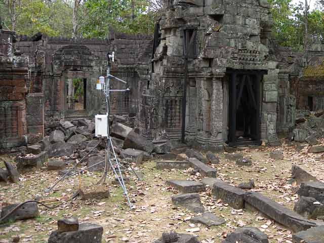 遺跡は、55m x 47mと小規模です。回廊の内部は、崩落した部分も多く石材が散乱しています。