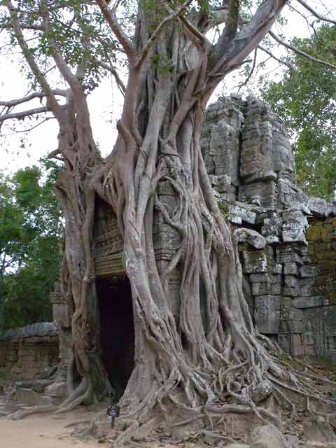 見所: 東塔門に絡みつくガジュマル