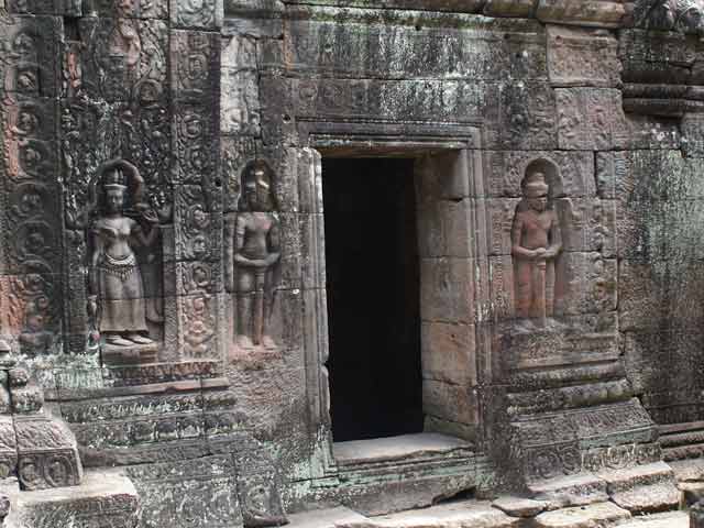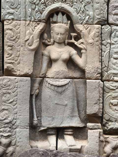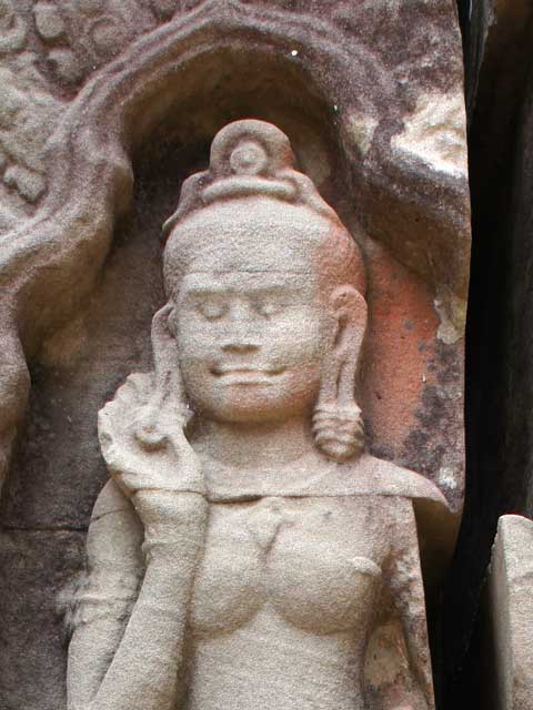 壁龕を飾る耳たぶの長いデヴァタが、こちらを見つめています。
