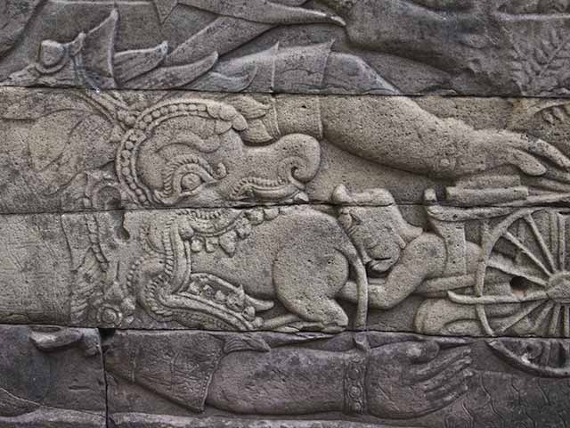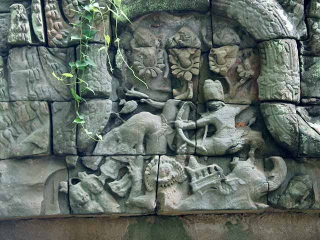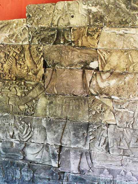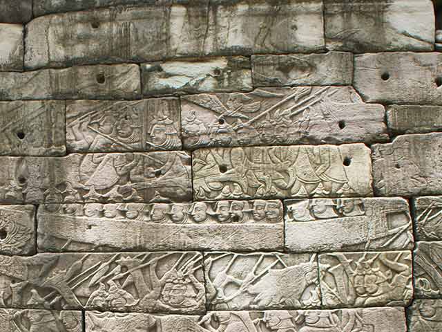 外周壁のレリーフは、チャンパ水軍や軽業師などで、多くのものが、バイヨン外回廊のものにそっくりです。